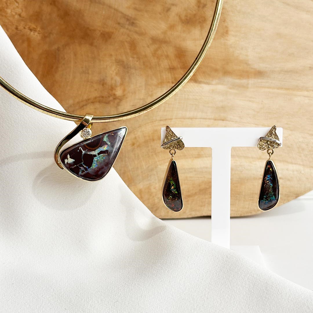 | Besatz | Matrix Boulder Opal und 0,18ct. Brillant |