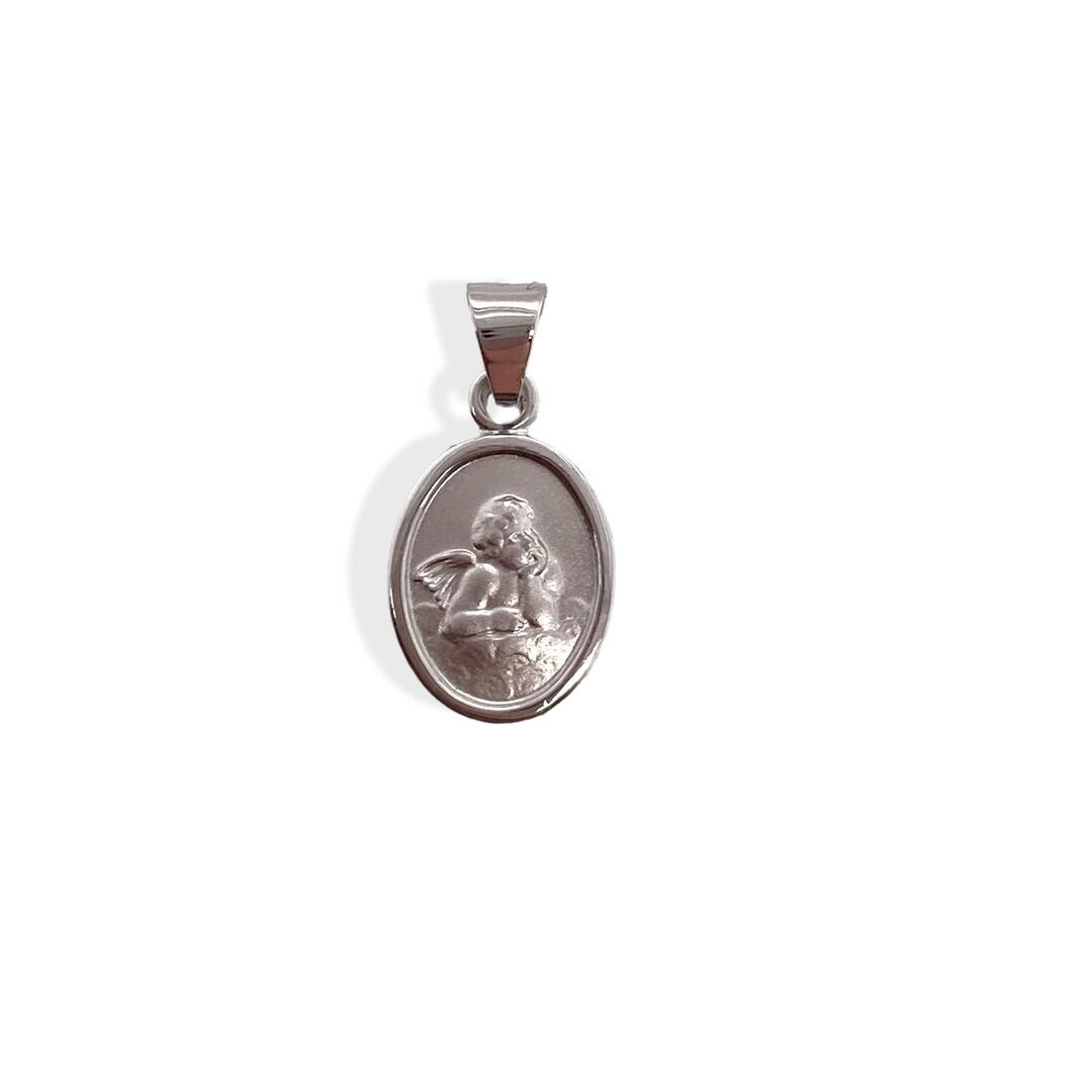 Dieser ovale Schutzengel-Anhänger aus 585 Weißgold hat eine Größe von 10mm und zeigt ein klassisches Engelmotiv auf matter Fläche, die von einem polierten Rand eingerahmt wird. Durch die ovale Form wirkt der Anhänger besonders harmonisch und zeitlos – eine beliebte Wahl für Mädchen und Jungen gleichermaßen. Das Zusammenspiel aus matter Oberfläche und glänzendem Rand sorgt für einen feinen Kontrast, der das Motiv besonders schön zur Geltung bringt. Als klassisches Geschenk zur Geburt oder Taufe hat der Schutzengel eine symbolische Bedeutung und wird gerne als Zeichen für Schutz und Geborgenheit weitergegeben. Eine passende Weißgoldkette in verschiedenen Längen, zum Beispiel 36cm für Kinder bis etwa 8 Jahre und 40–45 cm für ältere Kinder, ist ebenfalls bei uns erhältlich.