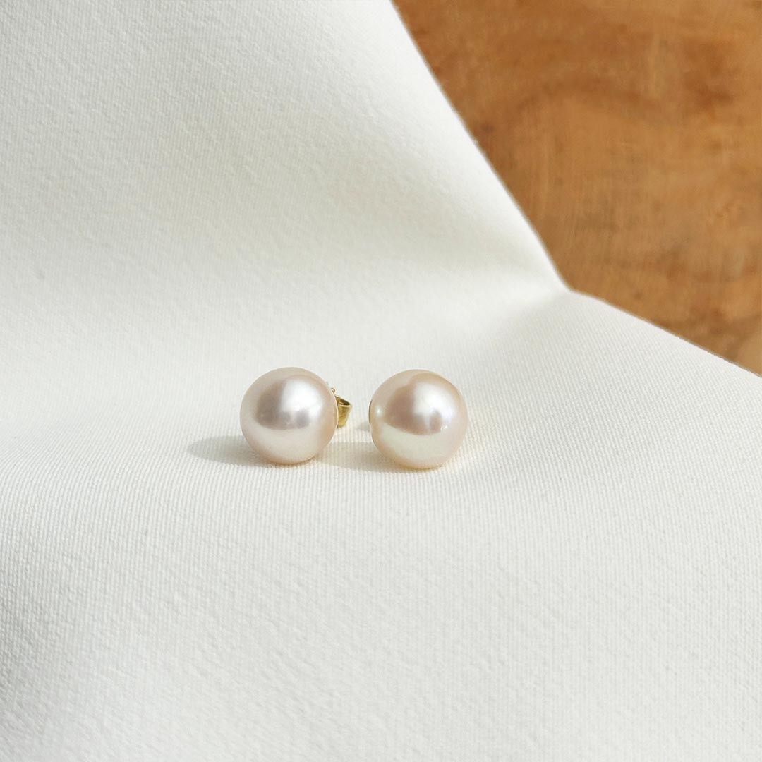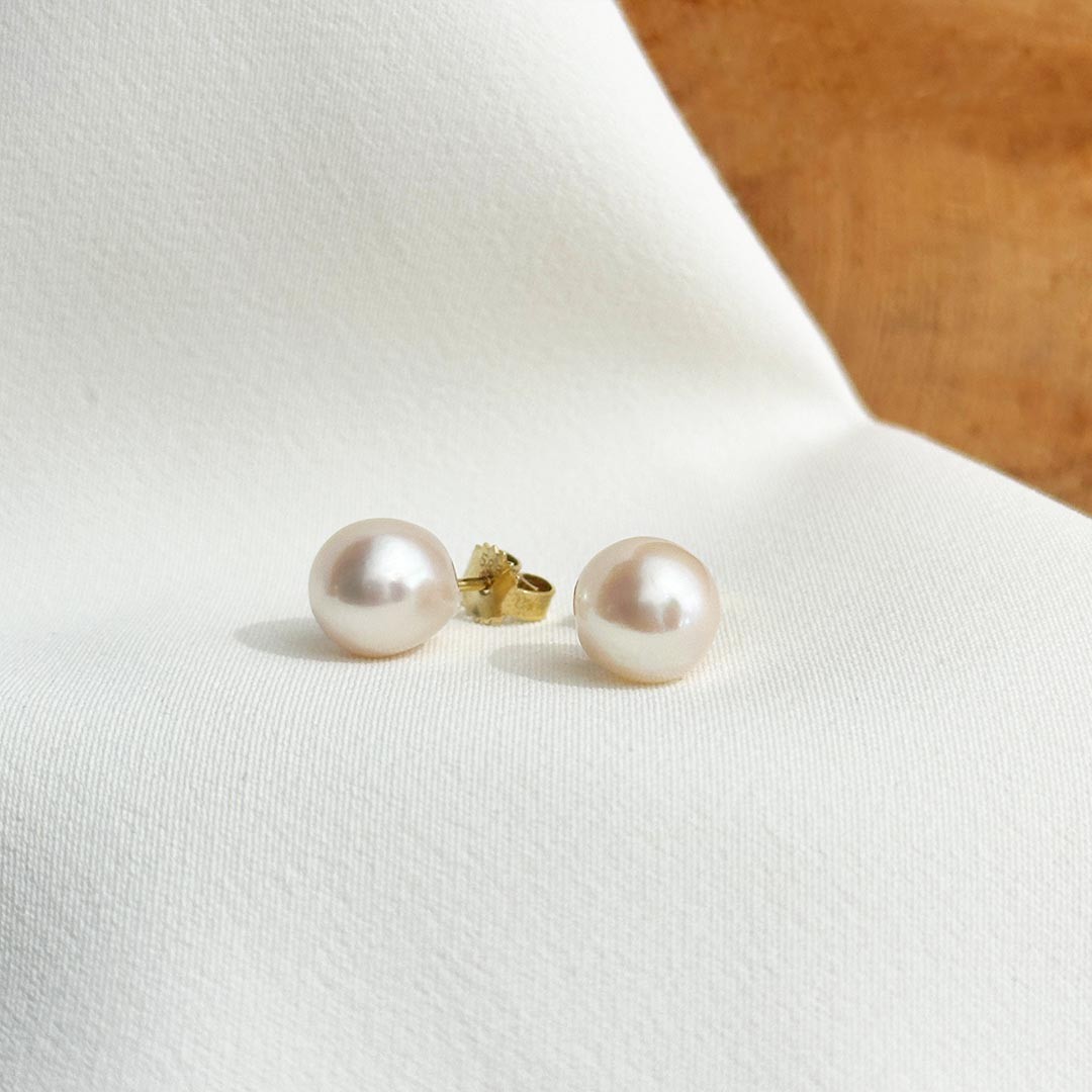 Diese Akoya-Perlenohrstecker mit einer Größe von 9mm sind auf 585er Gelbgold-Patenten gefasst und zeichnen sich durch ihren ausdrucksstarken, natürlichen Charakter aus. Die Perlen zeigen an der Unterseite eine sichtbar unregelmäßige Oberfläche – eine Eigenschaft, die sie als gewachsene Unikate kennzeichnet und ihren individuellen Charme ausmacht. Beim Tragen tritt diese Besonderheit nicht in Erscheinung, da sie nur bei genauer Betrachtung von der Seite oder von unten sichtbar wird. Gerade diese natürliche Struktur macht die Ohrstecker zu einer charmanten Wahl für alle, die charaktervollen Perlenschmuck mit Persönlichkeit bevorzugen – präsent, lebendig und mit authentischer Ausstrahlung.