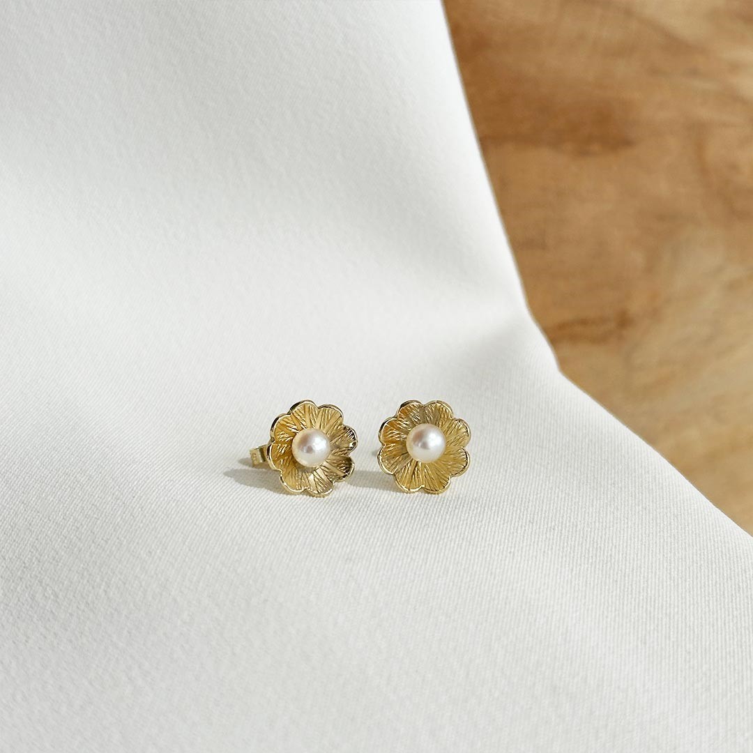 Diese bezaubernden Ohrstecker aus 585er Gelbgold sind in Form einer stilisierten Blüte gestaltet und tragen in ihrer Mitte eine edle Akoya-Perle. Mit einer Größe von ca. 10mm wirken sie leicht und schmeichelnd, während die Kombination aus warmem Goldton und sanftem Perlschimmer eine besonders harmonische Ausstrahlung verleiht. Ihr verspieltes, aber dennoch elegantes Design macht sie zu einem wunderschönen Schmuckstück für jeden Anlass.