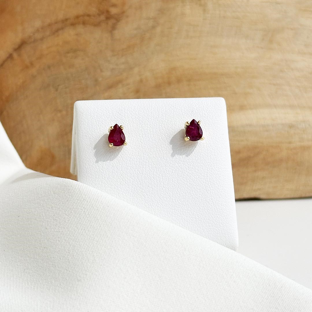 Diese Ohrstecker aus 750er Gelbgold sind mit insgesamt 1,18ct Rubin im Tropfenschliff besetzt. Die Rubine sind klassisch in einer 4-Krappenfassung gehalten, die ihre charakteristische Farbe und den feinen Glanz optimal zur Geltung bringt. Der warme Goldton bildet einen stimmigen Kontrast zum intensiven Rot der Steine. Rubine gelten seit jeher als Ausdruck von Lebenskraft und innerer Stärke – ihre symbolische Bedeutung macht diese Ohrstecker zu einem ausdrucksvollen Geschenk für besondere Momente. Zeitlos und präzise gearbeitet, lassen sie sich sowohl im Alltag als auch zu festlichen Anlässen vielseitig tragen.