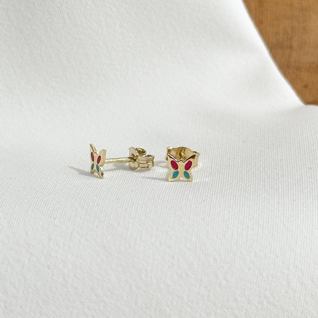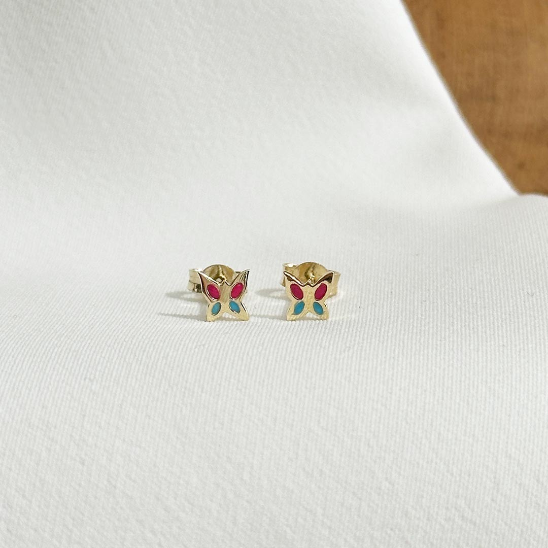 Diese kleinen Schmetterling-Ohrstecker aus 585er Gelbgold sind liebevoll gestaltet und begeistern mit bunt lackierten Flügeln in Rosa und Blau – ein fröhliches Farbspiel, das Kinderaugen leuchten lässt. Die kindgerechte Größe und das verspielte Design machen sie zu idealen Begleitern für jeden Tag. Leicht, bequem zu tragen und mit ihrer fröhlichen Ausstrahlung einfach ein Stück Freude am Ohr – ein bezaubernder Ohrschmuck, der Farbe und Leichtigkeit in den Alltag bringt.$LF$LF$LF$LF$LF$LF$LF