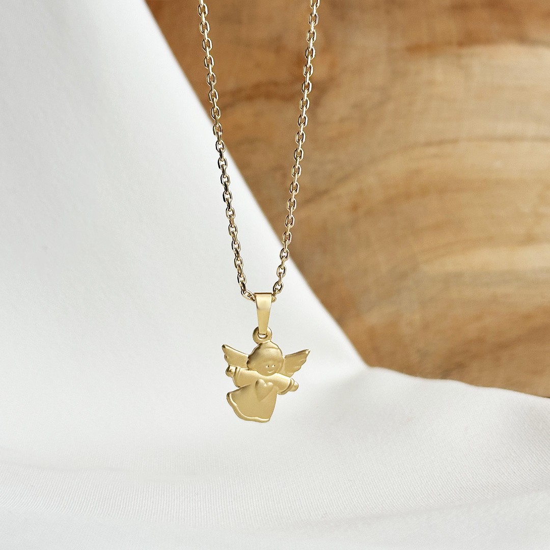 Dieser Schutzengel-Anhänger aus Gold ist liebevoll und modern zugleich gestaltet. In sanften Konturen zeigt er ein kleines Engelchen mit einem Herz auf der Vorderseite – ein Symbol für Geborgenheit, Vertrauen und Zuneigung. Durch die fein gearbeiteten Details wirkt der Anhänger lebendig, ansprechend und verspielt. Er ist ein beliebtes Geschenk zur Taufe oder zur Geburt und wird auch gerne als Glücksbringer getragen. An einer feinen Goldkette entfaltet der Engel seine volle Wirkung und begleitet die Trägerin oder den Träger als Zeichen des Schutzes und der Liebe. Passende Goldketten sind in verschiedenen Längen und Ausführungen in unserem Sortiment erhältlich.