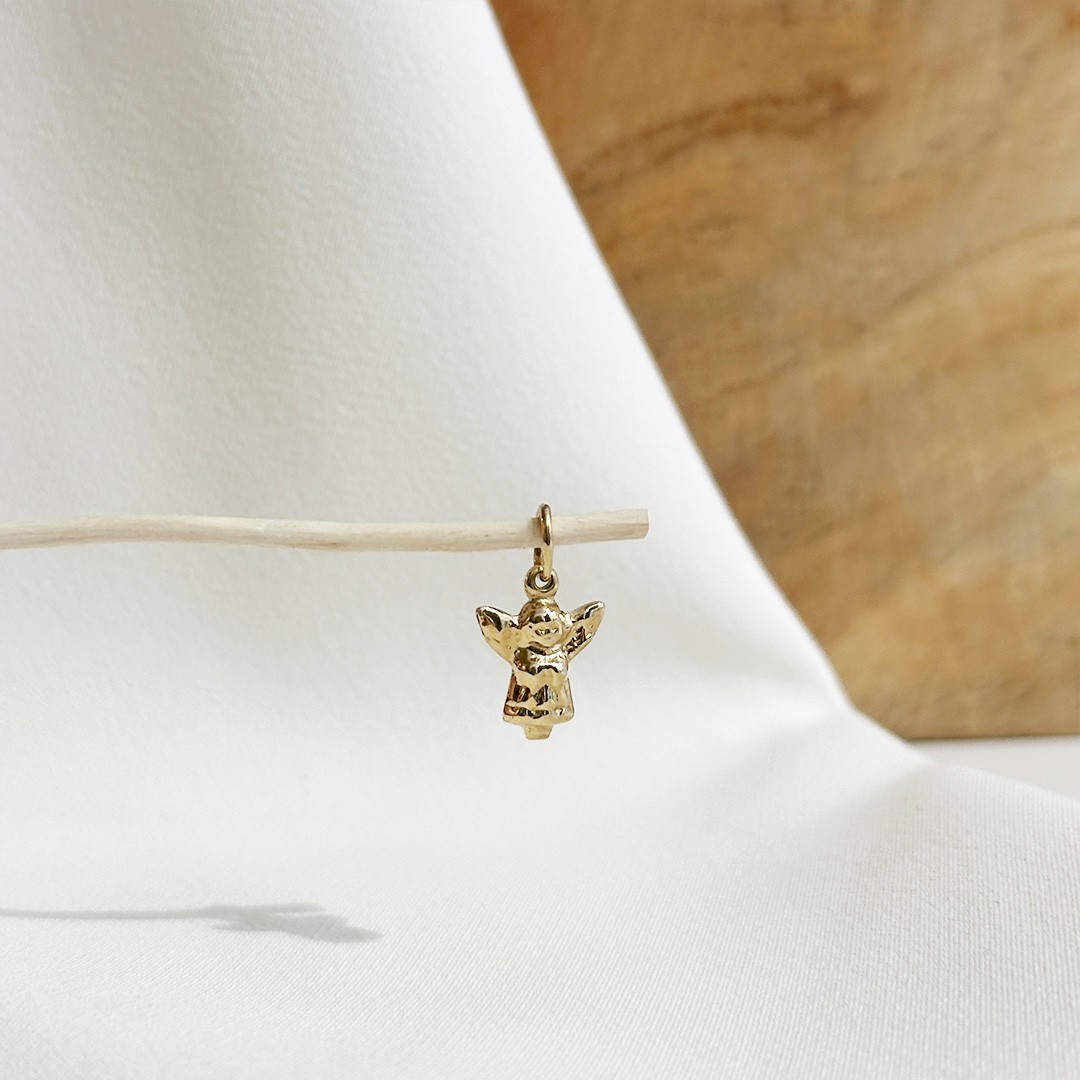 Dieser kleine, modern gestaltete Schutzengel aus 585er Gelbgold zeigt einen betenden Engel in zarter Form. Durch seine schlichte, ruhige Optik wirkt er besonders liebevoll und eignet sich wunderbar als symbolisches Geschenk zur Geburt oder zur Taufe. Der Anhänger lässt sich sowohl an einer feinen Halskette als auch an einem Bettelarmband tragen und kann auch sehr schön mit einer Gravurplatte kombiniert werden, um eine persönliche Botschaft zu ergänzen. Ein zartes Schutzsymbol, das viele Lebensmomente begleiten kann.