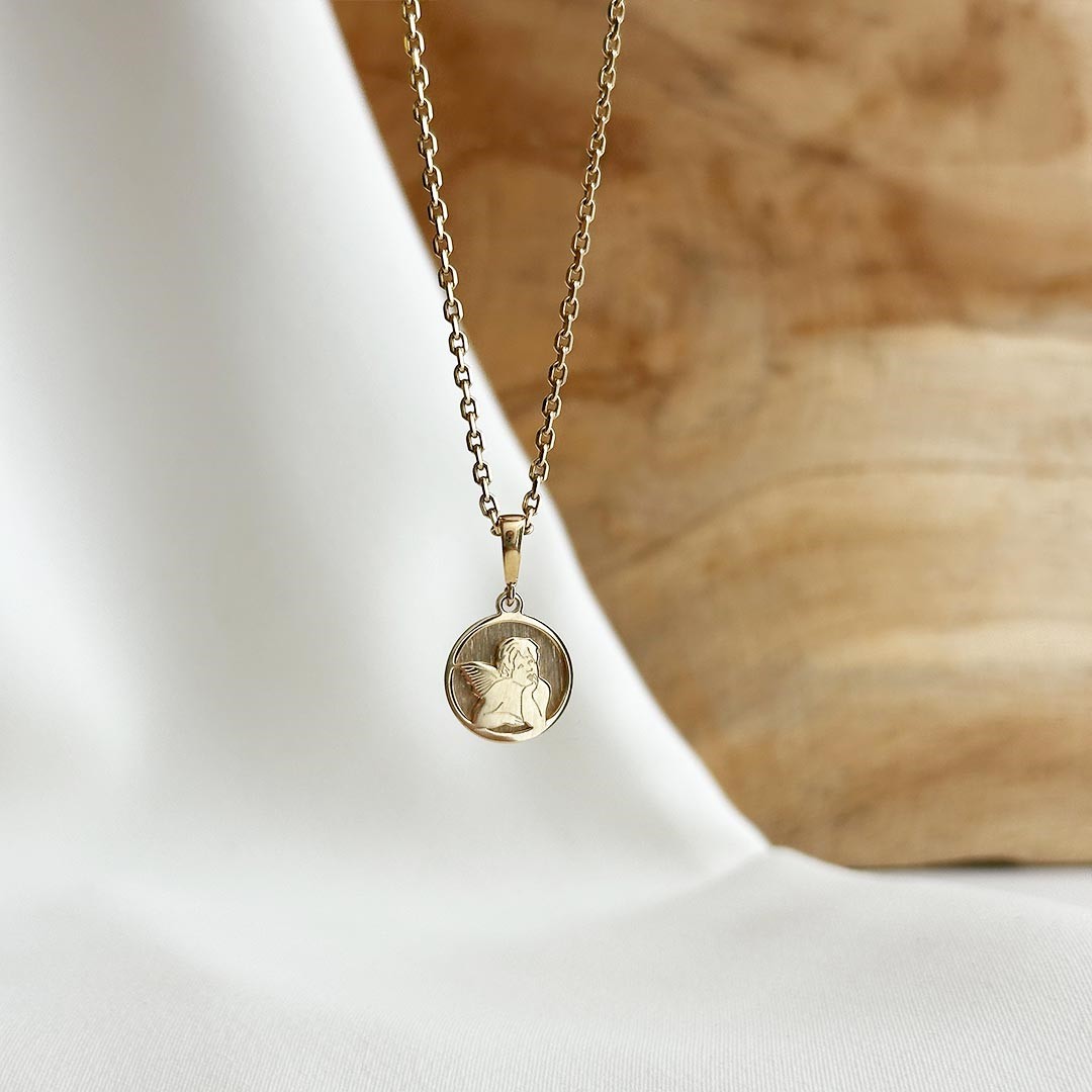 Dieser runde Schutzengel-Anhänger aus 585 Gelbgold hat einen Durchmesser von 11 mm und überzeugt durch seine lebendige Gestaltung. Der polierte Engel tritt leicht aus dem vertieften, mattierten Hintergrund hervor und erhält dadurch eine besondere Tiefe und Ausdruckskraft. Der kräftigere Rand rundet das Design harmonisch ab und verleiht dem Anhänger eine klare Form. Durch die moderne Interpretation des klassischen Schutzengels wirkt das Schmuckstück zeitgemäß und dennoch emotional – ein liebevolles Geschenk zur Geburt, Taufe oder zu einem anderen besonderen Anlass. Passende Goldketten und Bettelarmbänder, um den Anhänger stilvoll zu tragen, finden Sie selbstverständlich in unserem Sortiment.$LF$LF$LF$LF$LF$LF$LF$LF$LF$LF