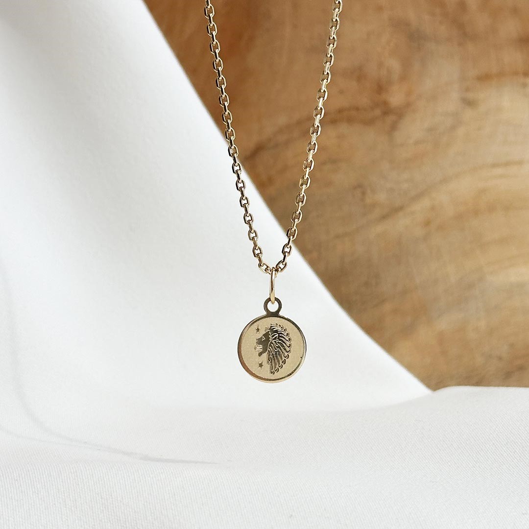 Dieser runde Sternzeichen-Anhänger aus 585 Gelbgold zeigt das Tierkreiszeichen Löwe auf besonders elegante Weise. Der polierte Goldrand bildet einen schönen Kontrast zur stark mattierten Oberfläche im Hintergrund, wodurch das Löwen-Symbol klar und deutlich hervortritt. Mit seiner zarten Größe von 10mm eignet sich dieser Anhänger ideal für ein Bettelarmband oder als dezenter Begleiter an einer feinen Goldkette. Ein besonderes Geschenk zur Geburt, Taufe oder zu anderen bedeutenden Anlässen.