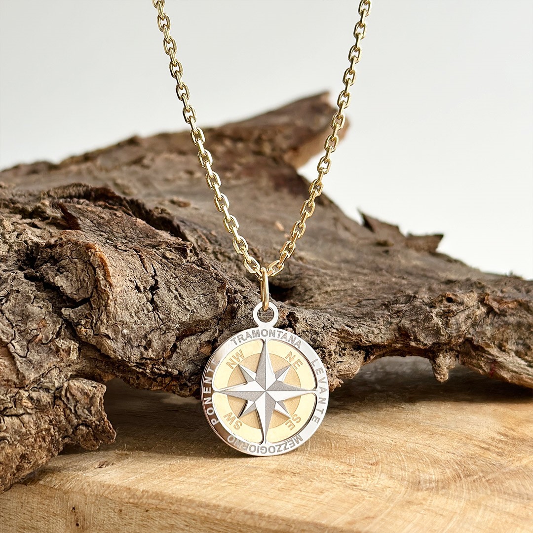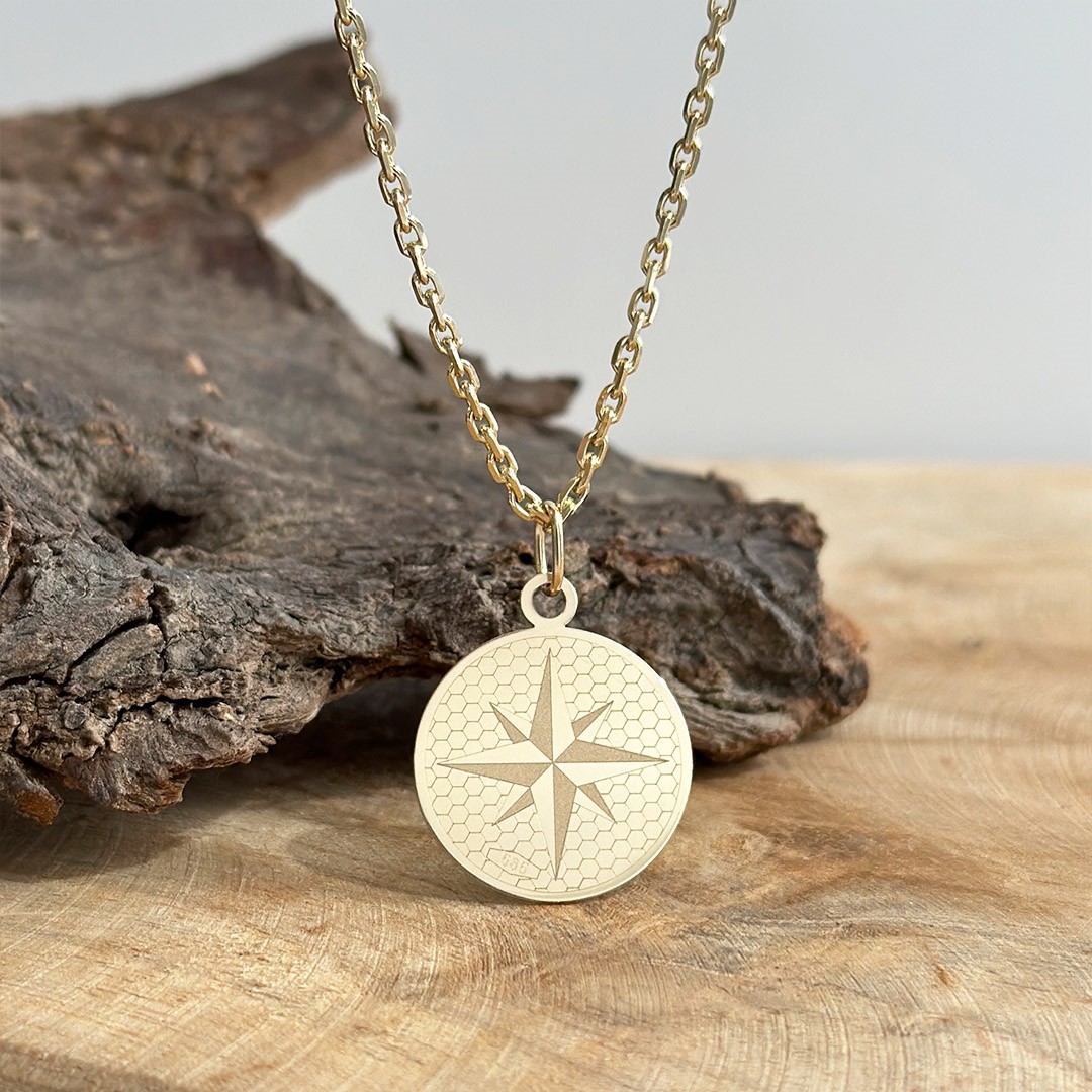 Unser Windrose-Anhänger aus 585 Gelb- und Weißgold verbindet klassische Handwerkskunst mit symbolischer Tiefe. Mit einem Durchmesser von 20 mm steht die Windrose für Orientierung, Zielstrebigkeit und innere Stärke – ein ausdrucksstarkes Motiv für alle, die ihren eigenen Weg gehen. Die zweifarbige Gestaltung sorgt für einen feinen Kontrast und unterstreicht die sorgfältige Verarbeitung. Dieser Anhänger eignet sich ideal als Geschenk zu besonderen Anlässen wie Geburtstagen, Jubiläen oder zum Vatertag. Passende Goldketten in verschiedenen Längen und Stärken finden Sie selbstverständlich ebenfalls in unserem Sortiment.