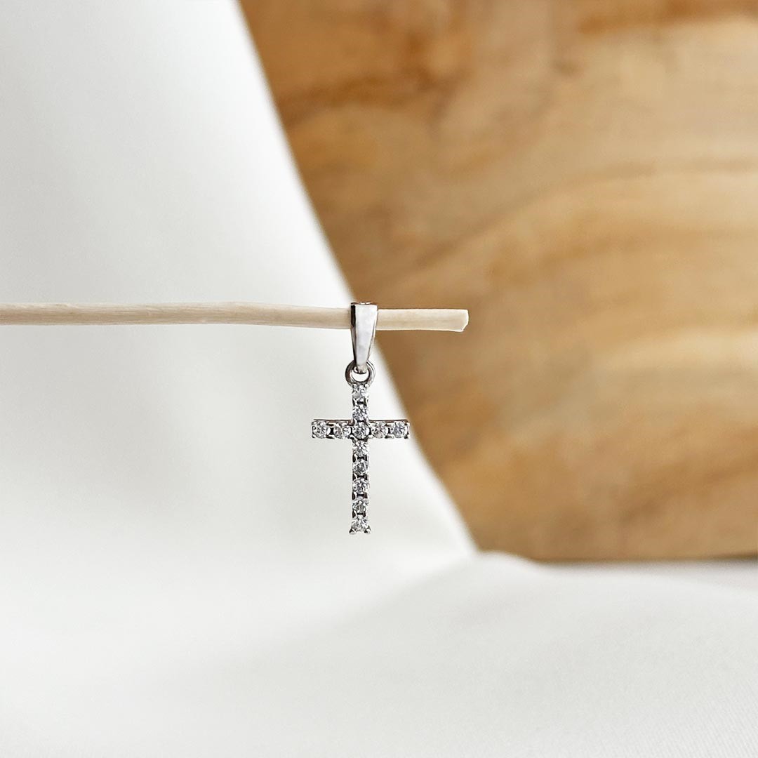 Dieser zarte Kreuzanhänger aus 585 Weißgold hat eine Größe von 13 mm und ist mit funkelnden Zirkonia besetzt, die in filigranen Krappenfassungen gefasst sind. Die offene Fassung lässt besonders viel Licht an die Steine und sorgt so für ein elegantes, lebendiges Funkeln. Durch seine feine Ausführung eignet sich der Anhänger wunderbar für zarte Goldketten und kann auch mit einer Gravurplatte kombiniert werden. Ein stilvolles Schmuckstück mit dezentem Glanz – ideal für Kinder, Jugendliche oder alle, die feinen, unaufdringlichen Schmuck mit besonderem Ausdruck schätzen.