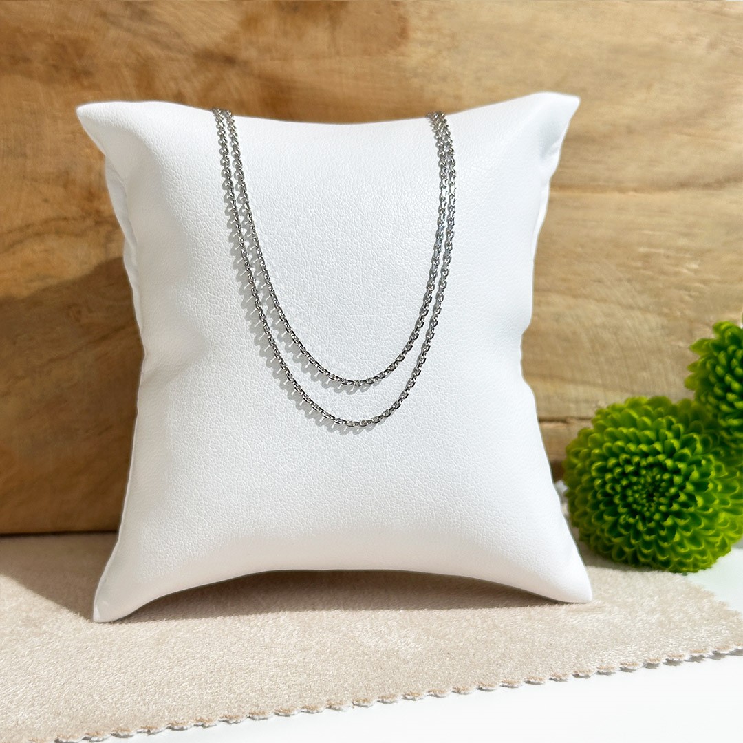 Diese Karreekette aus 585 Weißgold fasziniert durch ihr zweireihiges Design, das für eine außergewöhnliche Optik sorgt. Mit einer Länge von 45cm und einer Stärke von 1,2mm pro Kette liegt sie angenehm am Hals. Die facettierten, ovalen Glieder reflektieren das Licht besonders schön und sorgen für ein dezentes Funkeln. Diese Kette kann sowohl alleine getragen als auch mit einem passenden Anhänger kombiniert werden. Die Goldketten werden in Österreich gefertigt und sind in verschiedenen Goldlegierungen, Längen und Stärken erhältlich.