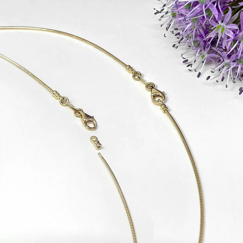 » Ein besonderes Detail vieler unserer Halsreifen ist der abnehmbare Schraubverschluss. Er ermöglicht das Anbringen selbst von Anhängern mit sehr kleinen Ösen oder engen Koulants – schnell, sicher und ganz ohne Werkzeug. Unsere runden Omega-Halsreifen mit diesem Verschluss sind in verschiedenen Stärken erhältlich und zeichnen sich durch ihre exakte Verarbeitung und hochwertige Anmutung aus. Die durchdachte Technik verbindet sich hier mit klarer Formensprache – so entstehen Schmuckstücke, die sich vielseitig kombinieren lassen und Ihre Anhänger stilvoll zur Geltung bringen.