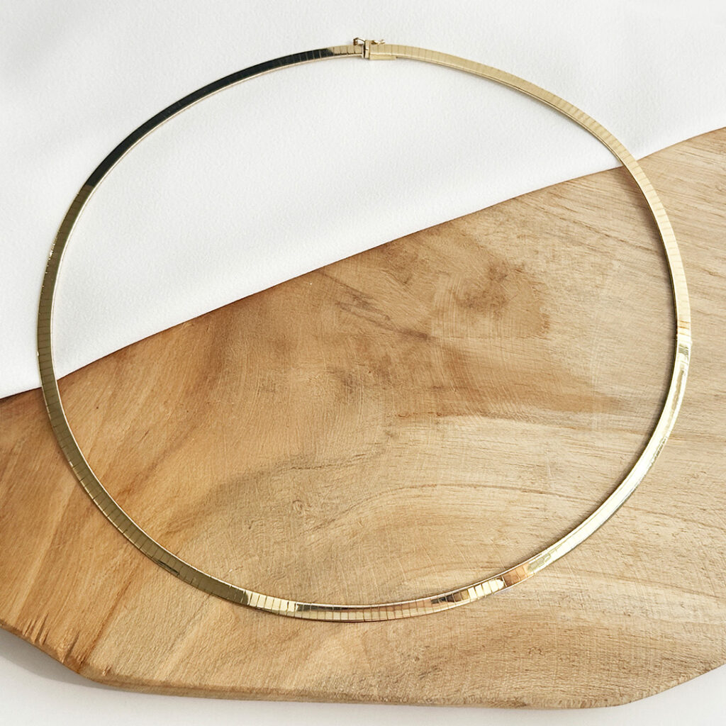 » Ein Halsreifen wirkt anders als eine klassische Goldkette – seine ruhige, klare Form bringt Anhänger besonders zur Geltung und verleiht eine elegante Aussage. Dabei liegt er nicht locker fallend, sondern formstabil und zugleich angenehm anliegend am Hals – wie ein fein gezeichnetes Collier. Je nach Stil und Tragewunsch führen wir flache oder leicht runde Halsreifen in unterschiedlichen Breiten, die sich harmonisch an den Hals legen. In unserem Geschäft in Wien laden wir Sie herzlich ein, diese besondere Art des Halsschmucks kennenzulernen. Bringen Sie gerne Ihre eigenen Anhänger mit oder wählen Sie aus unserem Sortiment – gemeinsam finden wir die passende Kombination aus Halsreifen und Anhänger, die Ihre persönliche Stilrichtung unterstreicht. Unsere Goldhalsreifen sind in verschiedenen Breiten, Legierungen und Längen erhältlich – wir beraten Sie gerne mit Erfahrung, Feingefühl und einem Blick für das Detail.