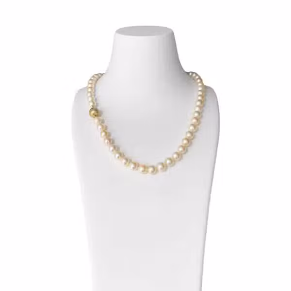 Die Farbe von Perlen reicht von zarten Cremetönen über schimmerndes Weiß-Rosé bis hin zu dunklen Nuancen wie Grau. Besonders der zarte weiß-rosé Lüster der Akoya-Perle schmeichelt wie kein anderer und zieht alle Blicke auf sich. Die klassische Perlenkette ist eine einreihige Kette aus gleich großen Perlen, die den Halsansatz schmückt. Die Länge der klassischen Perlenketten variiert von kurzen Chokerketten bis zu längeren Varianten, die in der Mitte des Dekolletés enden. Wir haben die beliebten Längen von 42cm bis 60cm in unserem Geschäft lagernd. Das Kürzen oder Verlängern unserer Perlenketten ist selbstverständlich möglich.