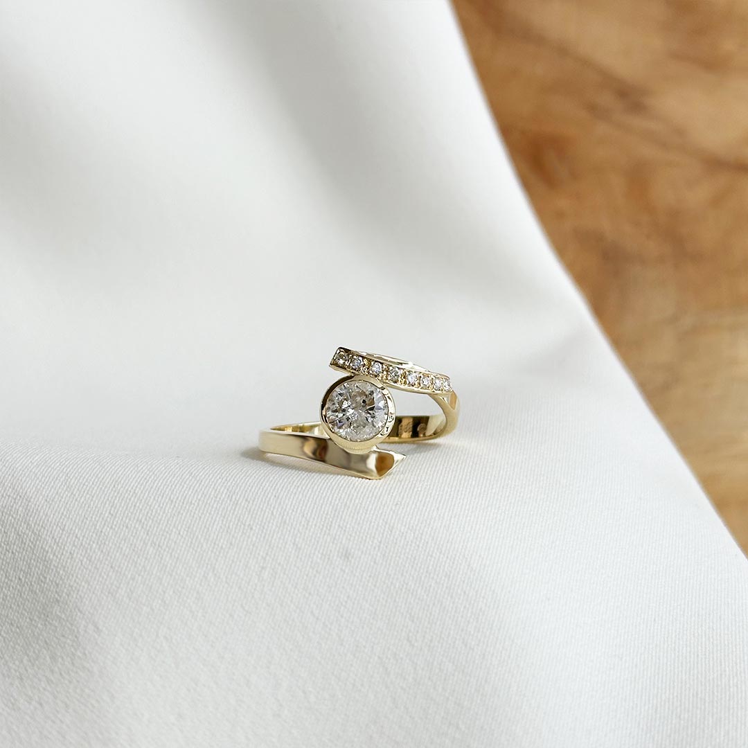 » Verlobungsringe mit geschwungener Ringschiene, Verlobungsringe mit drei Brillanten und Solitaire-Ringe mit seitlichem Brillantbesatz zählen zu unseren modernen Verlobungsringen. Diese Ringe werden für Sie in 585 und 750 Weißgold, Gold und Roségold und sowie in 950 Platin angefertigt. Gerne zeigen wir Ihnen die verschiedenen Modelle bei einem Beratungsgespräch in unserem Geschäft. Selbstverständlich können all unsere Modelle größer und kleiner gemacht werden. Wenn Sie die richtige Ringweite nicht wissen, passen wir den Ring nach dem großen Moment für Sie an. Innerhalb der ersten drei Monate ab Kauf, ist die Weitenänderung für Sie sogar kostenlos! Gerne beraten wir Sie bei einem Beratungsgespräch und beantworten alle Ihre Fragen.