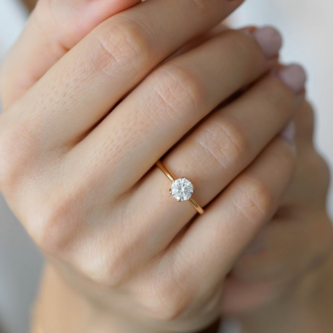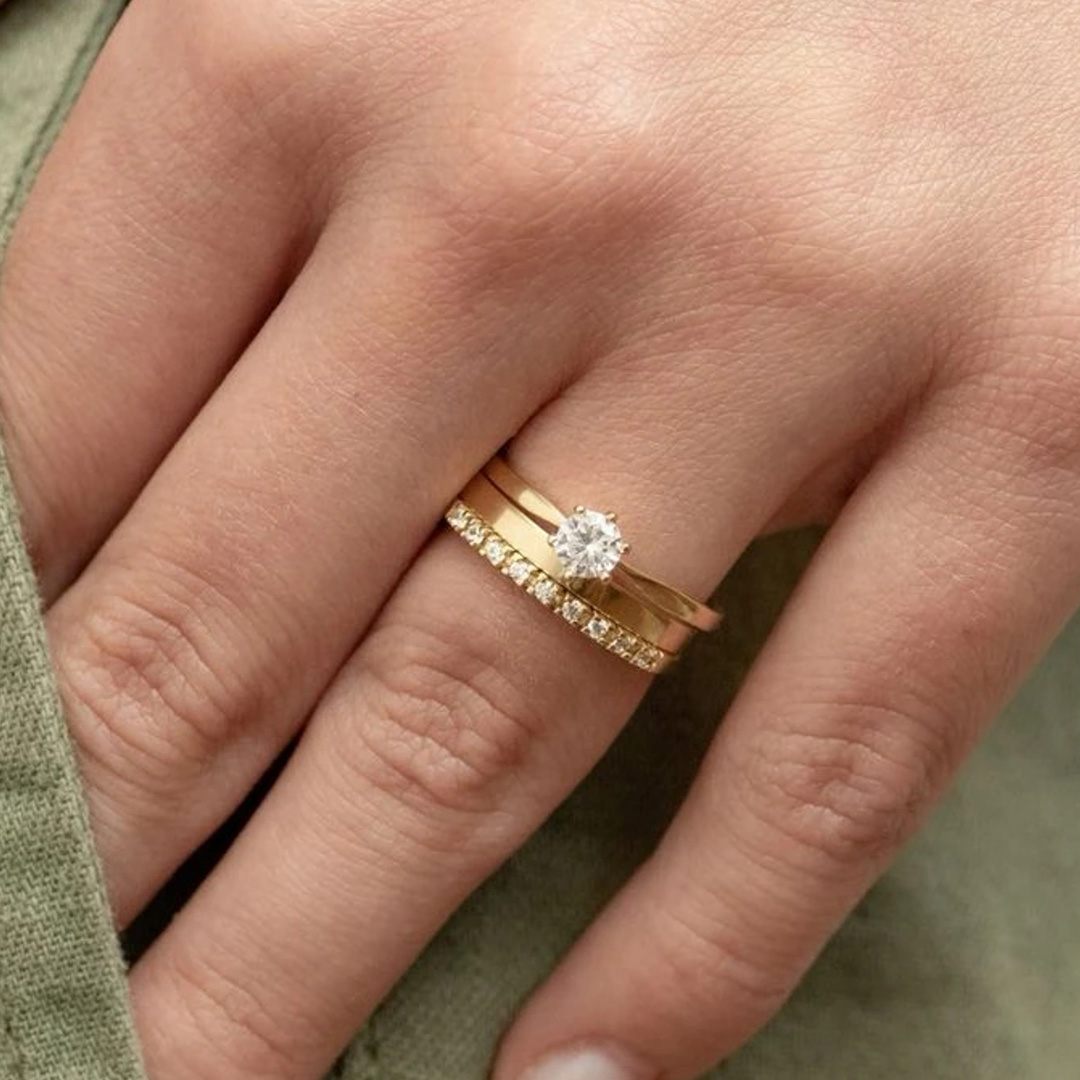 Die richtige Ringgröße ist beim Aussuchen eines Verlobungsrings nicht zwingend notwendig. Der menschliche Körper verändert sich. Finger können je nach Jahreszeit leicht anschwellen oder an kalten Tagen schmaler werden. Die entscheidenden Faktoren sind zusätzlich die Art des Rings und die Breite der Ringschiene. Schmale, kopflastige Ringe wie beispielsweise Solitaire-Ringe werden gerne eine Ringweite kleiner genommen, um einen sicheren und bequemen Sitz zu gewährleisten. Im Gegensatz dazu ist bei breiteren Ringschienen eine etwas größere Ringweite oft angenehmer. Keine Sorge, falls Sie die genaue Ringgröße nicht kennen. Unsere Verlobungsringe werden in einer mittleren Damen-Ringweite gefertigt und können problemlos kleiner und größer gemacht werden. Dieses Service ist bei fast all unseren Verlobungsringen einmalig kostenlos*. Gerne können Sie auch einen Ring aus ihrem Schmuckkästchen mitnehmen, damit wir einen ungefähren Anhaltspunkt haben.